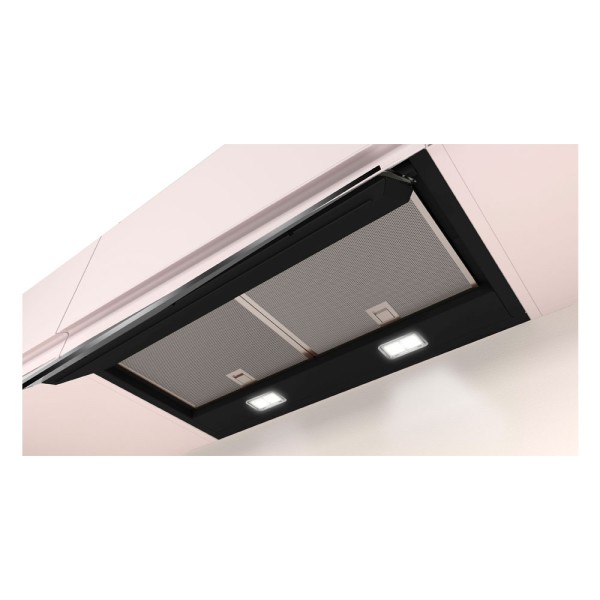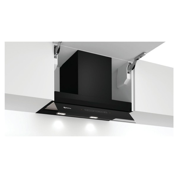 La campana extractora Balay 3BD967GN, integrable en tu mueble de cocina, aporta elegancia y sofisticación gracias a su visera protectora de muebles en cristal negro.